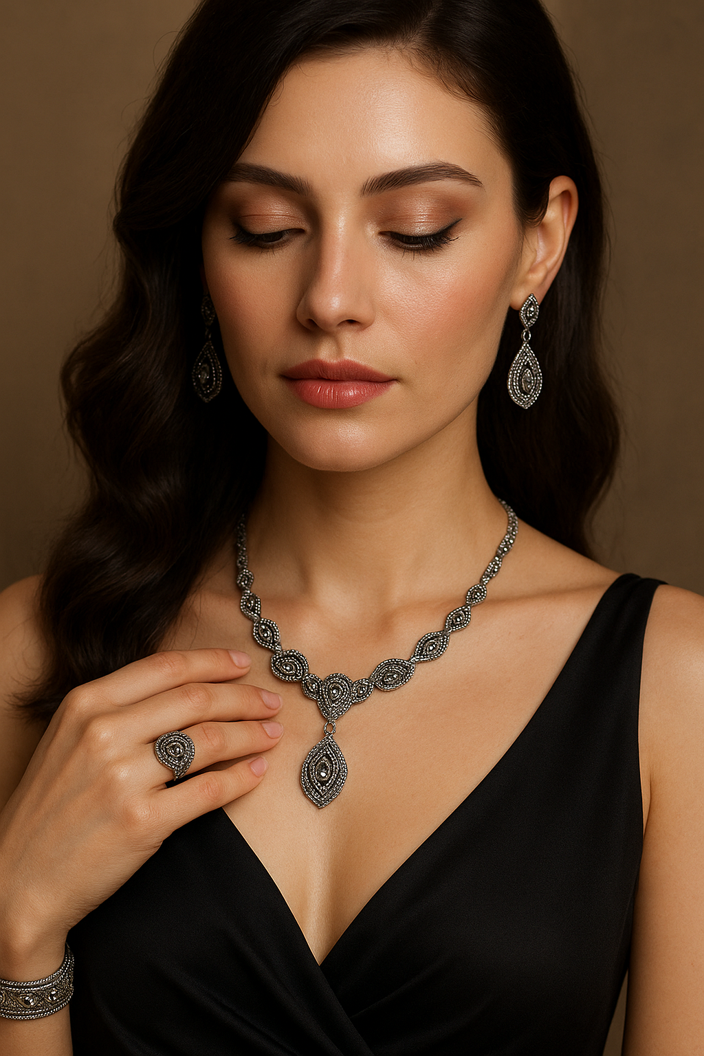 Discover our refined collection of silver, marcasite and stone jewellery, where vintage charm meets modern sophistication. Dedicated to the exquisite, our collection reflects a discerning eye for elegance and a passion for artistry. Every piece embodies a harmonious blend of tradition and innovation.